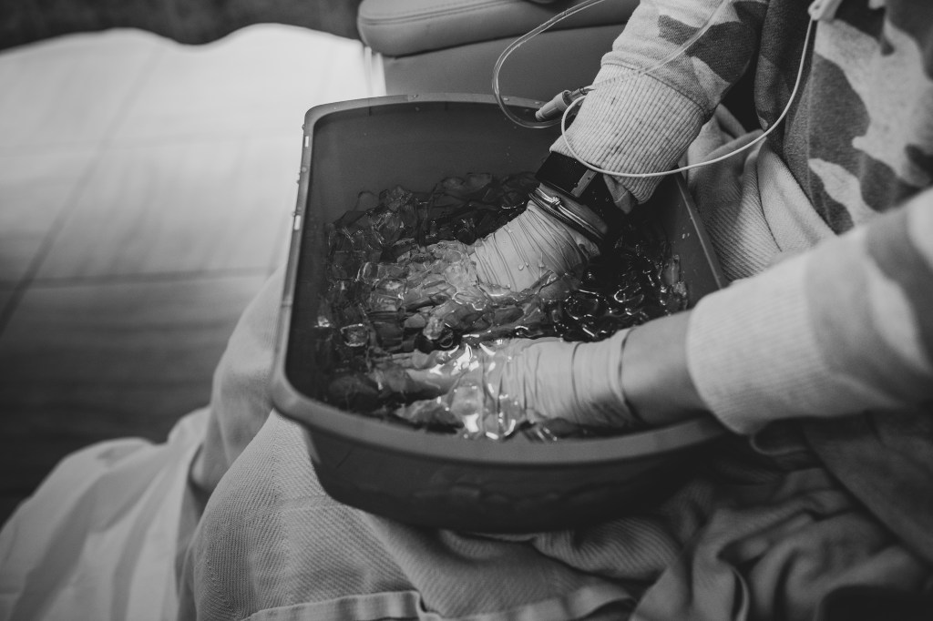 The type of chemo I receive requires me to ice my hands and feet in order to prevent neuropathy. The first day they just put bags of ice and my hands and I could tell it just wasn’t cold enough. I read on a support group that someone used ice water and never got neuropathy. It was definitely worth a try. But, oh boy, does it hurt. I found 10 seconds in and 20 seconds out for 30 mins was the ratio that worked for me. I can do anything for 10 seconds.