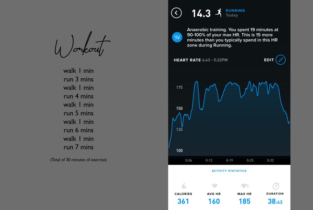 Learning to create healthy habits, enjoying a more active life and finding things that make me happy are great goals but not simple to achieve. I want to simplify, but decluttering a whole house seems overwhelming. I want to run 32 miles, but that seems unachievable. I want to eat healthier, but dang it it’s been a rough day and I want some ice cream. Last week my training coach created an interval workout. Walk a minute then run three, walk another minute and then run 4 mins and so on. Running with a visible end right in front of me made the whole run more enjoyable. By the time I was done, compared to my last run was a 180-degree flip in my attitude. Instead of negative talk and “I hate this,” my run was fun and I could have run farther. Learning and understanding how I deal with struggle and finding solutions let me perform my best. Finding little ways to challenge my comfort zone by just stepping outside of it instead of a giant leap have been successful.