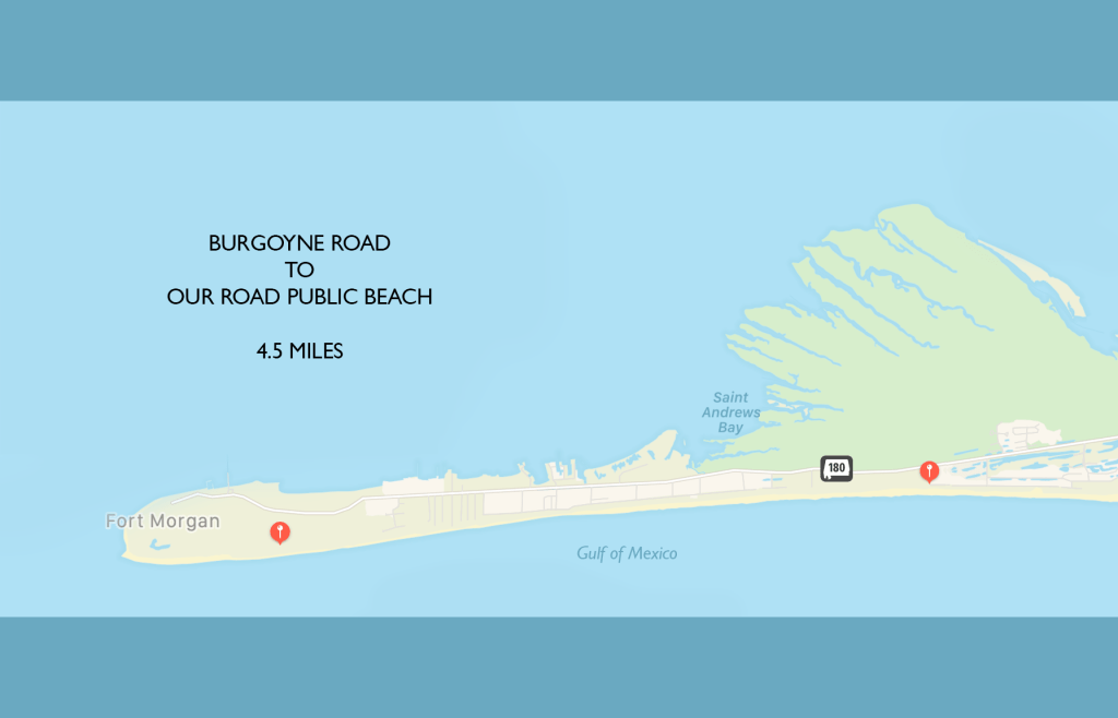 This past week I’ve been doing some research on distances of my route. There is not a lot of information out there. A road does not run the whole length of the beach. Heading west, it ends in Gulf Shores. To get to Fort Morgan you need to backtrack and go north a mile, then take a road west along the bay around Little Lagoon lake. To be honest, I’m not completely sure my route will be 32 miles. Alabama tourism declares they have 32 miles of white sand beaches. I haven’t found any information other than that. Fort Morgan has a protected beach and marsh from the tip of the peninsula to the first public beach access. Talking to the locals and Fort Morgan employees a little known and less advertised beach access is where I will begin, Burgoyne Road.