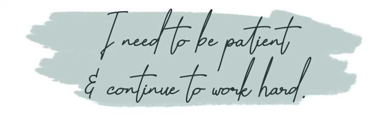 Today I need to remember big improvements won’t happen overnight. I just need to be patient. Working on consistency is more important than speed. Today I will trust the process and get stronger every day.