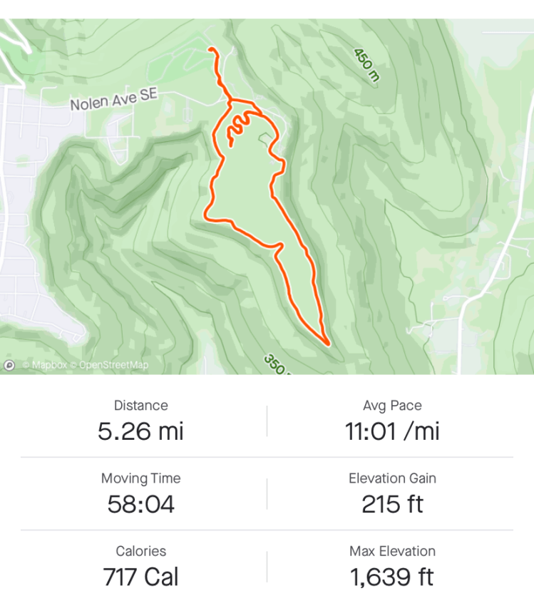Good morning! I ran a 5-miles at Monte Sano this weekend. I’ve been getting tired of my same old concrete loops so a ventured on to some trails. I was great. It was a mind trick that helped me stay busy looking at the scenery and feet placement instead of running in a straight line constantly staring at my destination. It made the miles go by quick.