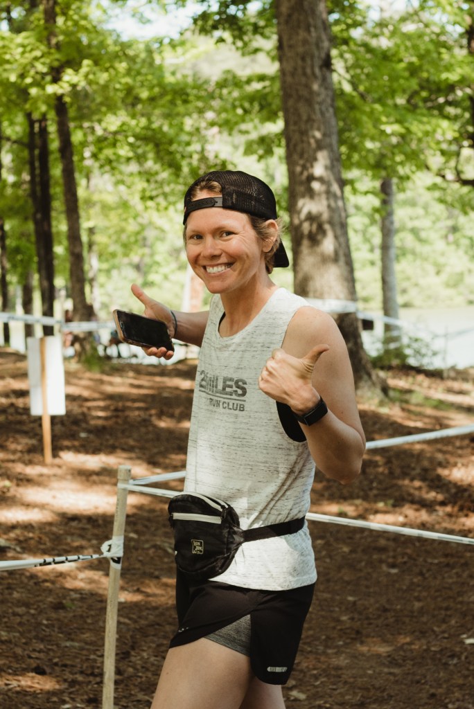 Sara handed the bib off to Amanda. Before race day I had never met her in person. Amanda came all the way to Alabama from New Jersey to run with us. When I first had the idea of running this team race I put out a call to survivors on my social media survivor pages. Crickets. I was self-conscious and doubting myself until Amanda messaged me. She said she loves to travel and would love to come down and be a part. She is an active member of many running communities and a strong runner with many long-distance races under her belt. She was exactly what our team needed- a survivor confident in her running abilities and her knowledge of race days. She provided a calmness to us all. But don’t let her experience fool you. When she handed off her bib her smile was contagious.