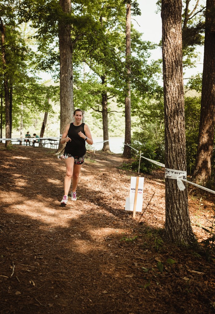 And finally, it was my turn. My first trail race! I was nervous. I knew when the bib was in my hand the excitement would want me to run fast. This was no easy trail though and I had to pace myself. Lots of hills, rocks and down trees made for an exciting journey. The view of the lake as the trail winded around was worth it.