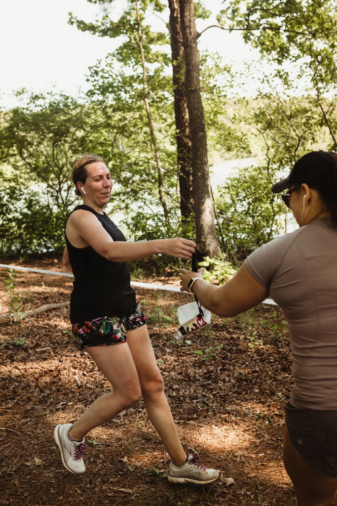 Lisa was up next. She had never run a race before and only a few weeks ago ran 3 miles for the first time. Though she is no stranger to fitness and competition, running your first race is intimidating, especially on a trail. Lisa was furthest out from her diagnosis on our team. I have found out, no matter where you are in recovery, cancer still plays a role- the fear of cancer returning always present. When Lisa handed me the bib I could see hear beaming! She had overcome her fears and completed her section. Without her place on our team she said she would have never done this. Having each other to support one another in reaching goals is important and more exciting to celebrate in completion. Thank you, Lisa, for sharing your joy with us.